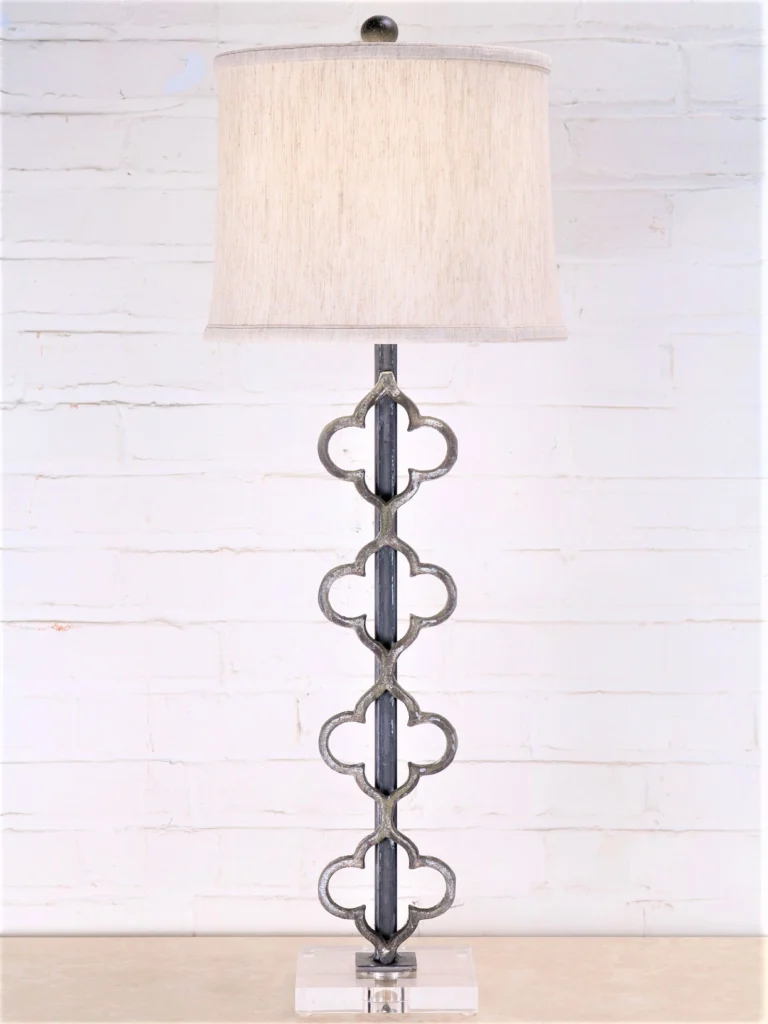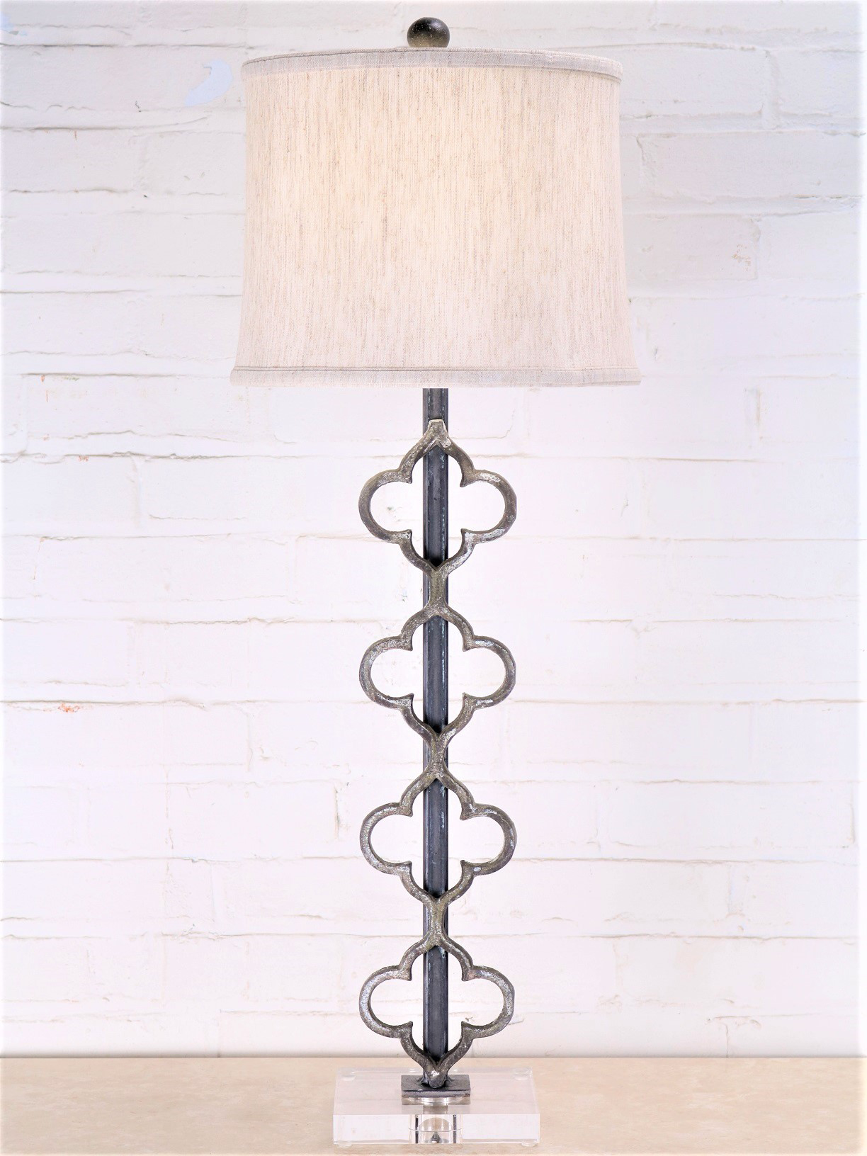 LP002-AB, Pair – Greek Key, Acrylic Base31″ high, with separate 15″ Drum Shade